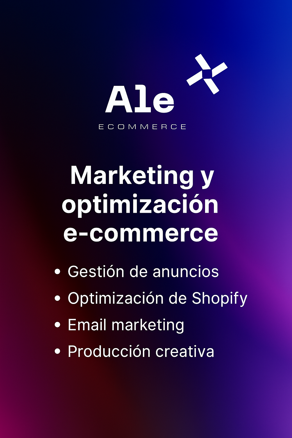 Nos especializamos en mercados hispanohablantes, ofreciendo soluciones personalizadas en gestión de anuncios, optimización de Shopify, email marketing y producción creativa.